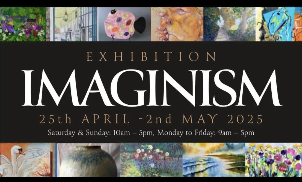 Our next exhibition here at Vellum Mill Gallery is the one you have been waiting for,IMAGINISM! Featuring 11 local artists,all respected experts in their field,you will be surrounded by colour,light,shape and sculpture like never before. With the Private View featuring music from ELTEl,Liz Andrews and Richard Lines-Davies,on Friday,25th April 6.30-9.30,the exhibition runs throughout the next week and concludes on Friday,2nd May. This is one NOT to miss!